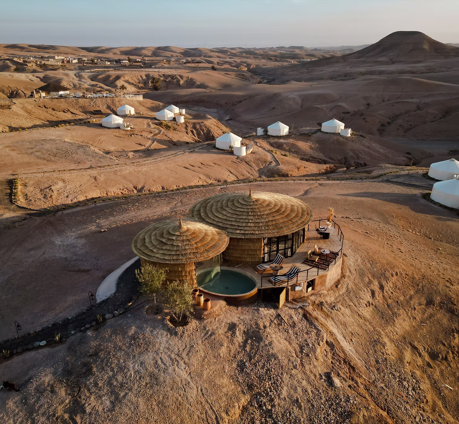 Be Agafay is not your typical desert retreat. While most travelers flock to the Sahara's towering dunes, this hidden sanctuary offers something far more intimate - a chance to experience the raw, unfiltered silence of the Agafay stone desert, just 30 minutes from Marrakech yet worlds away in spirit. Here, the landscape is stark and minimalist, a lunar expanse that strips away distraction and invites deep introspection. The camp itself is a masterpiece of sustainable design, where solar-powered luxury meets Berber authenticity, and where every detail - from the signature hammam to the glass-walled yoga studio - has been thoughtfully curated to enhance your connection with the land.